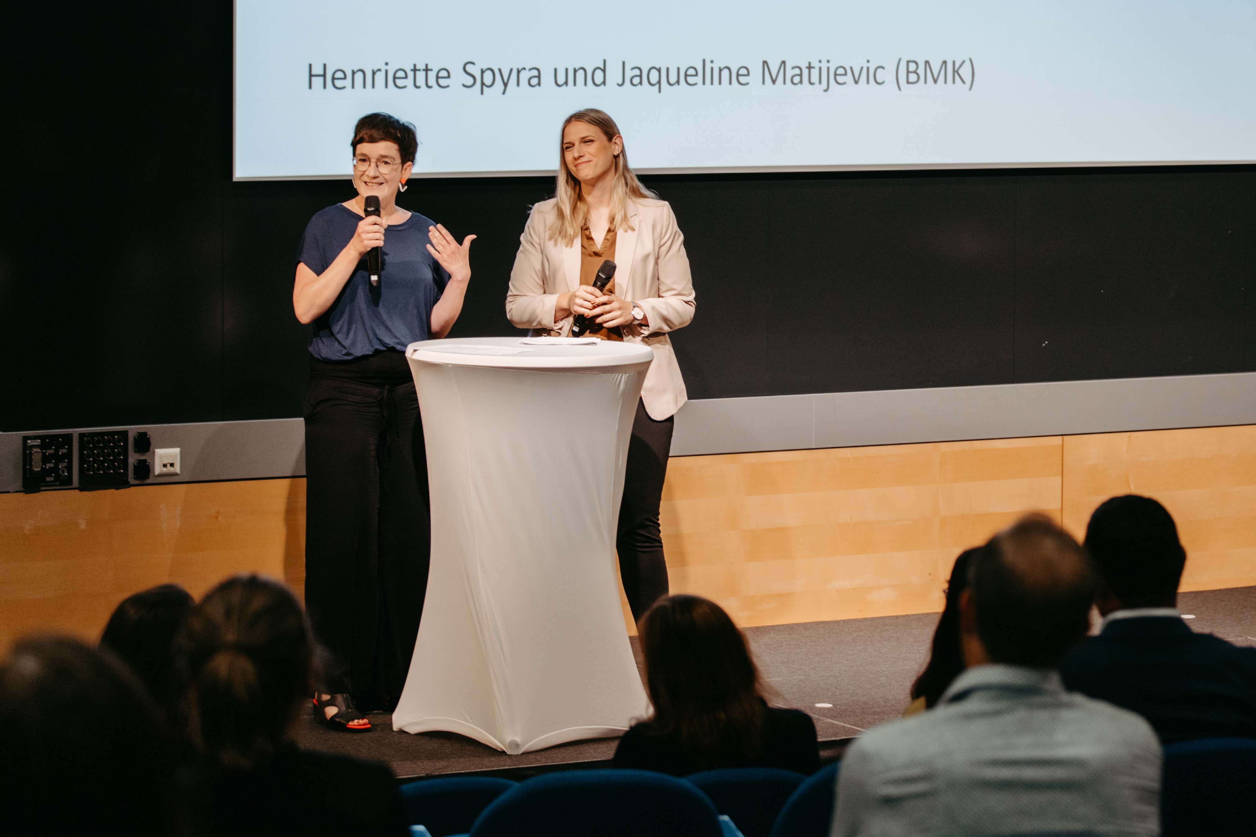 Es wurde erklärt, wie Forschungsergebnisse den Fachabteilungen des BMK neue Impulse bieten. Zudem informierten sie über die Entscheidung, als Maßnahme gegen den Fachkräftemangel pro Jahr 1 Mio. € in den Bereich „Menschen in FTI" zu investieren, mit dem Nachwuchsförderung unter besonderer Berücksichtigung von Gleichstellungs- und Inklusionsaspekten abgedeckt wird.