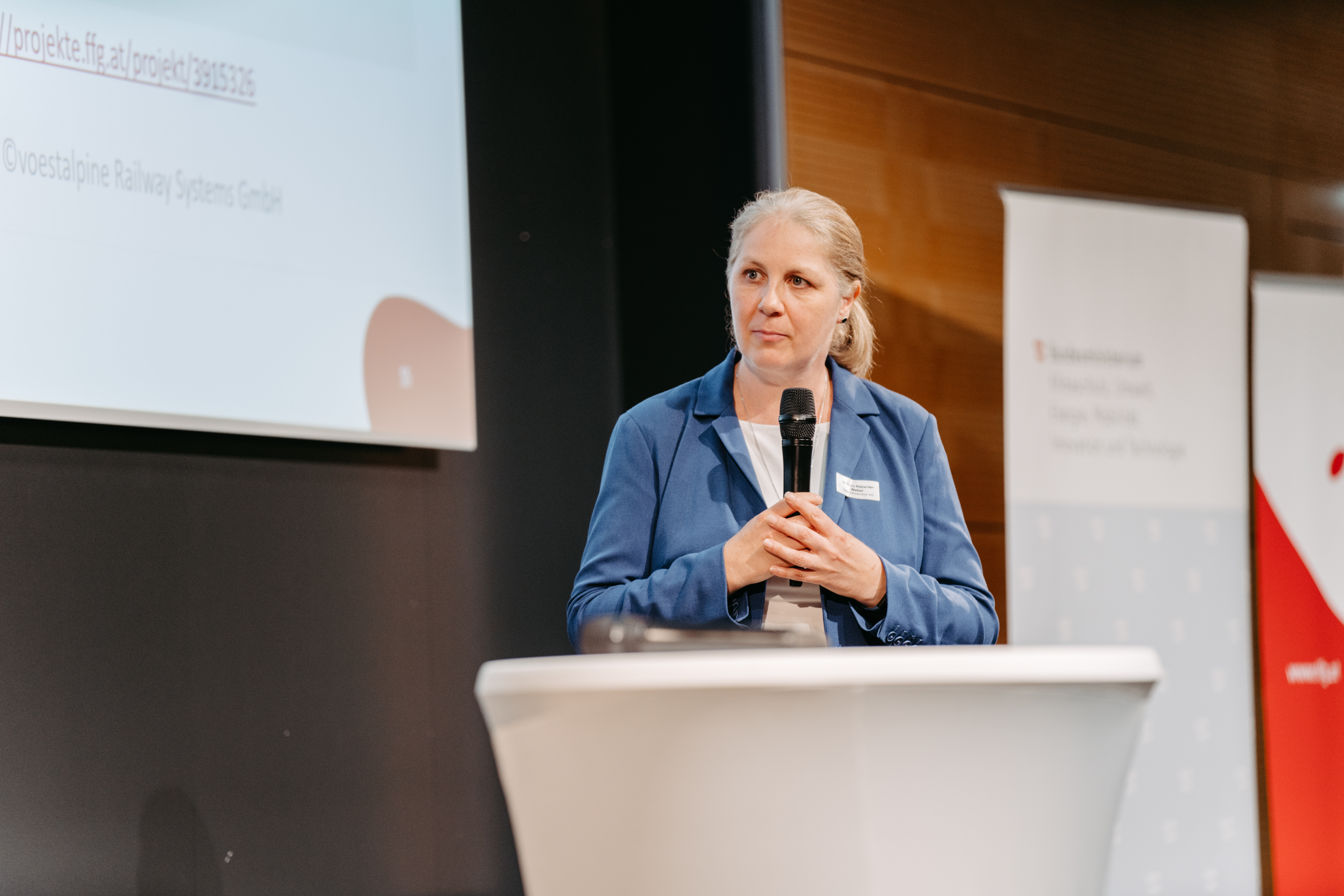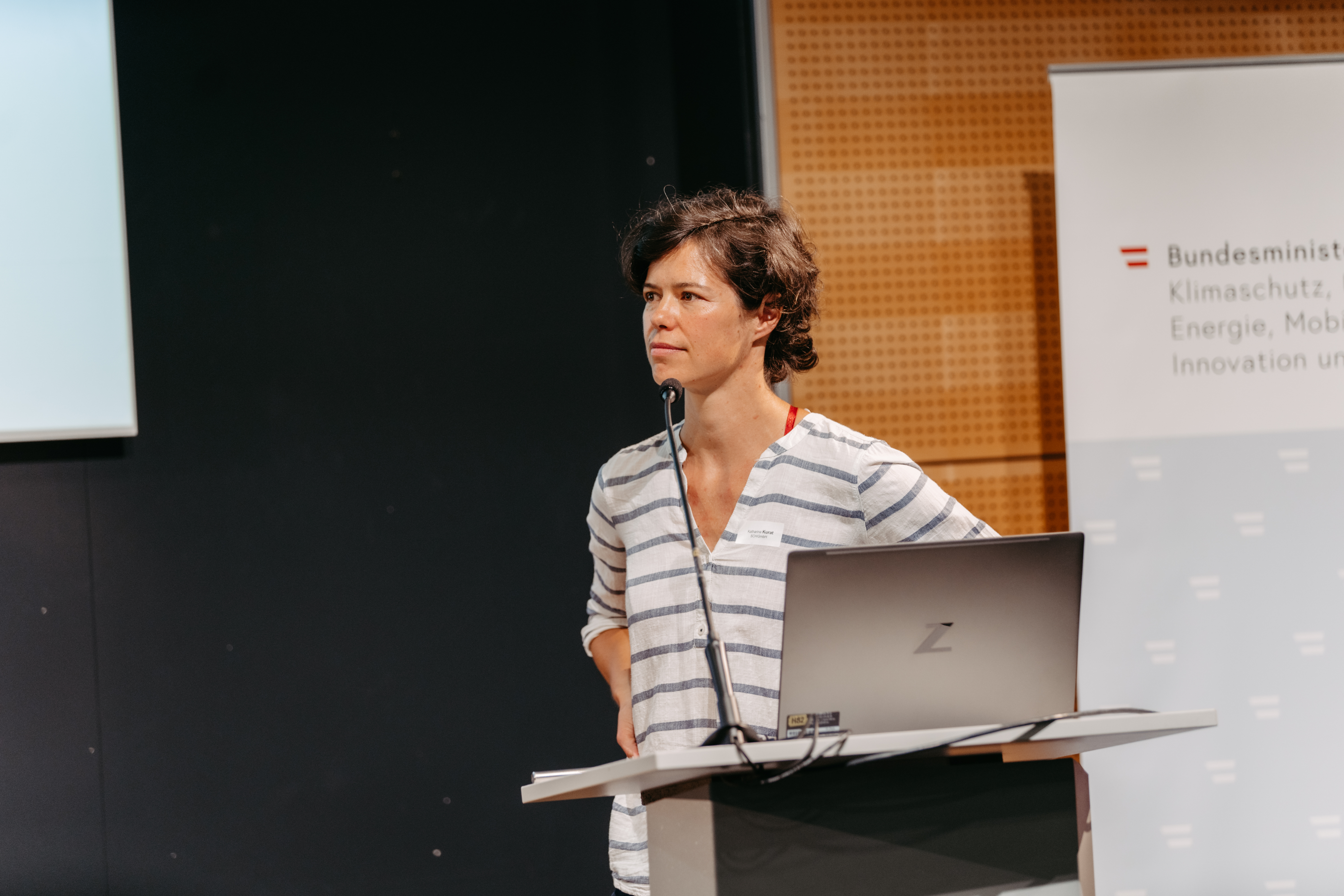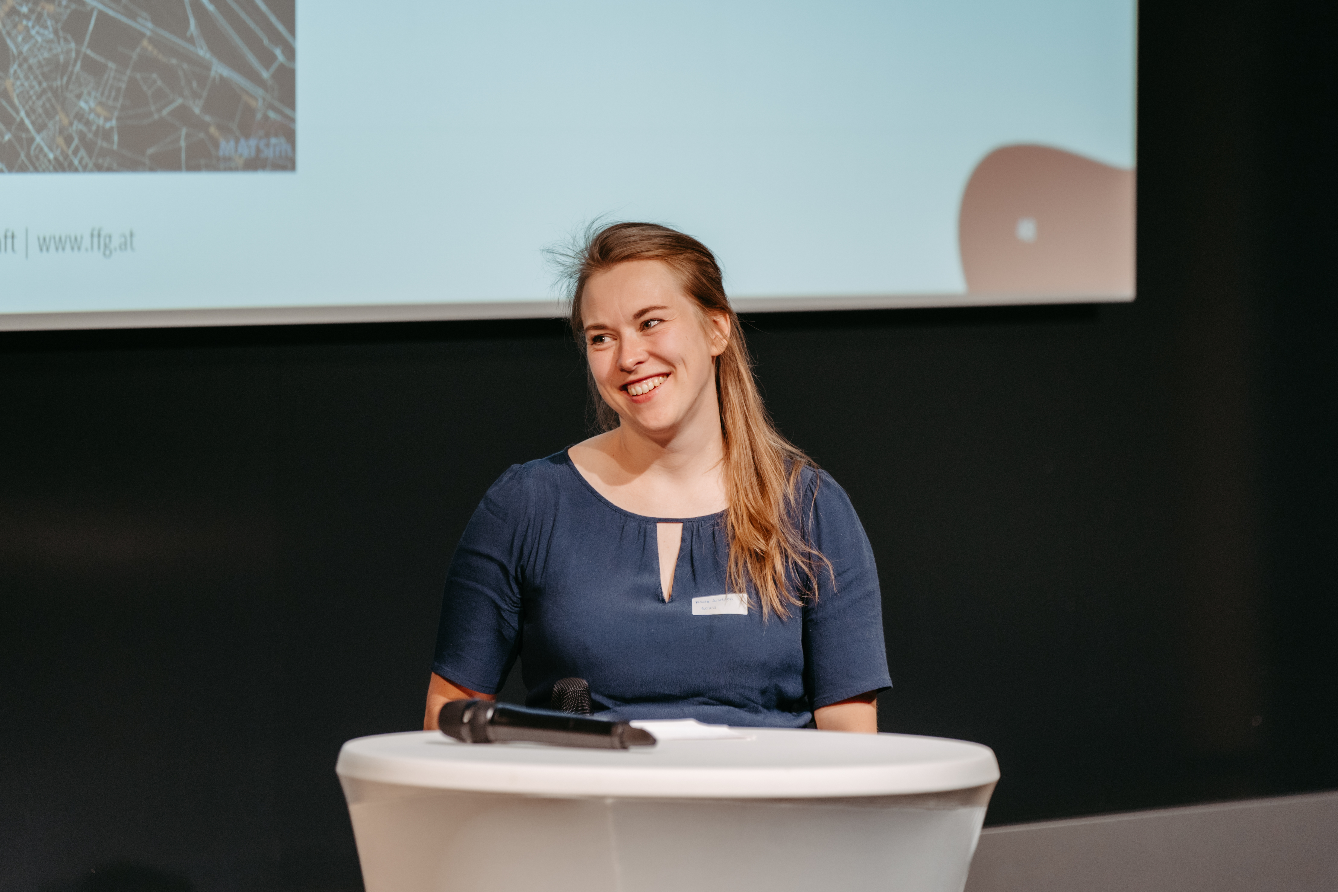 Unter der Moderation von Claudia Falkinger kamen rund 140 Teilnehmende im Wiener Techgate zusammen, um sich über die breite Auswahl an Finanzierungstöpfen für Forschung, Technologie und Innovation (FTI) für die Mobilitätswende zu informieren.