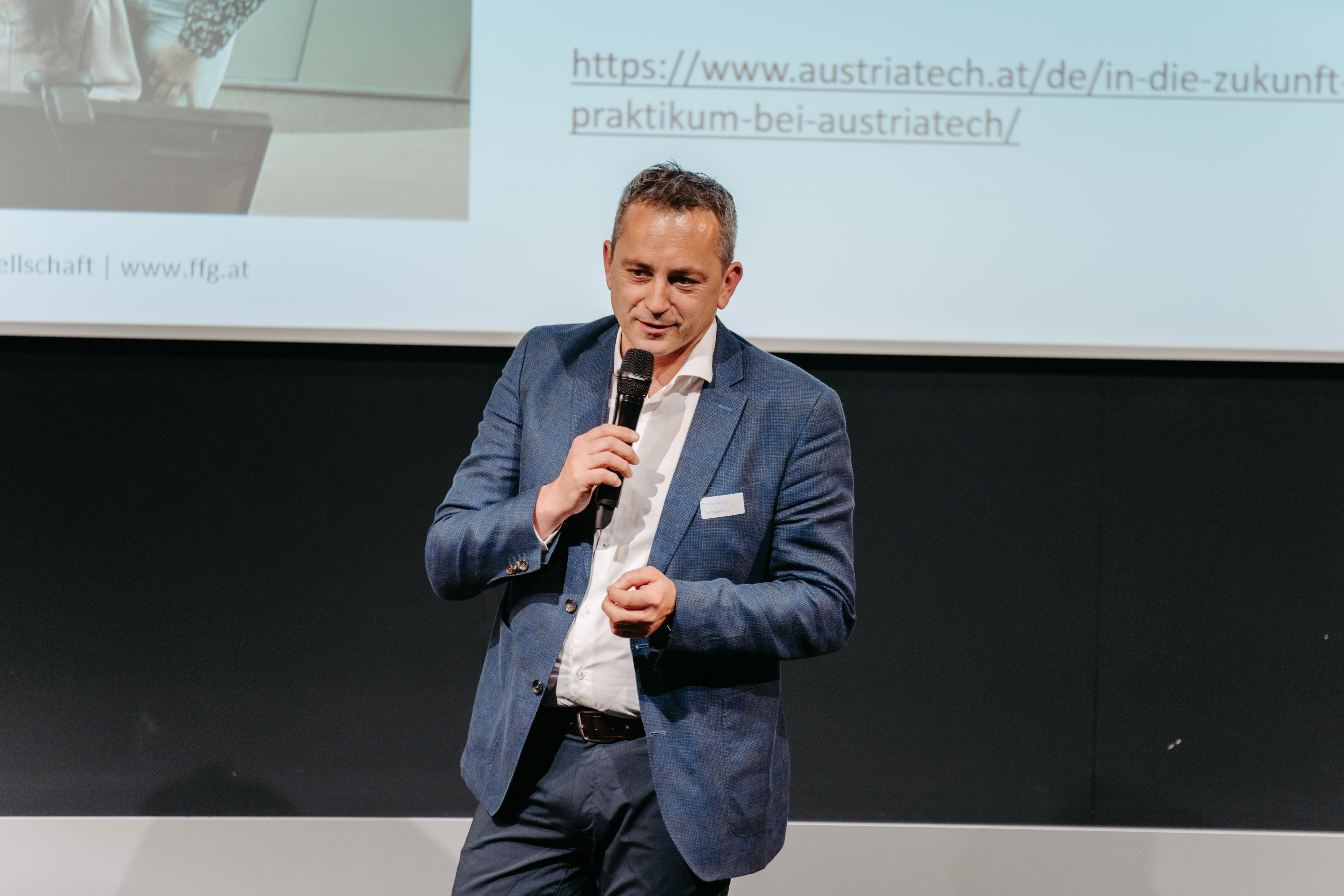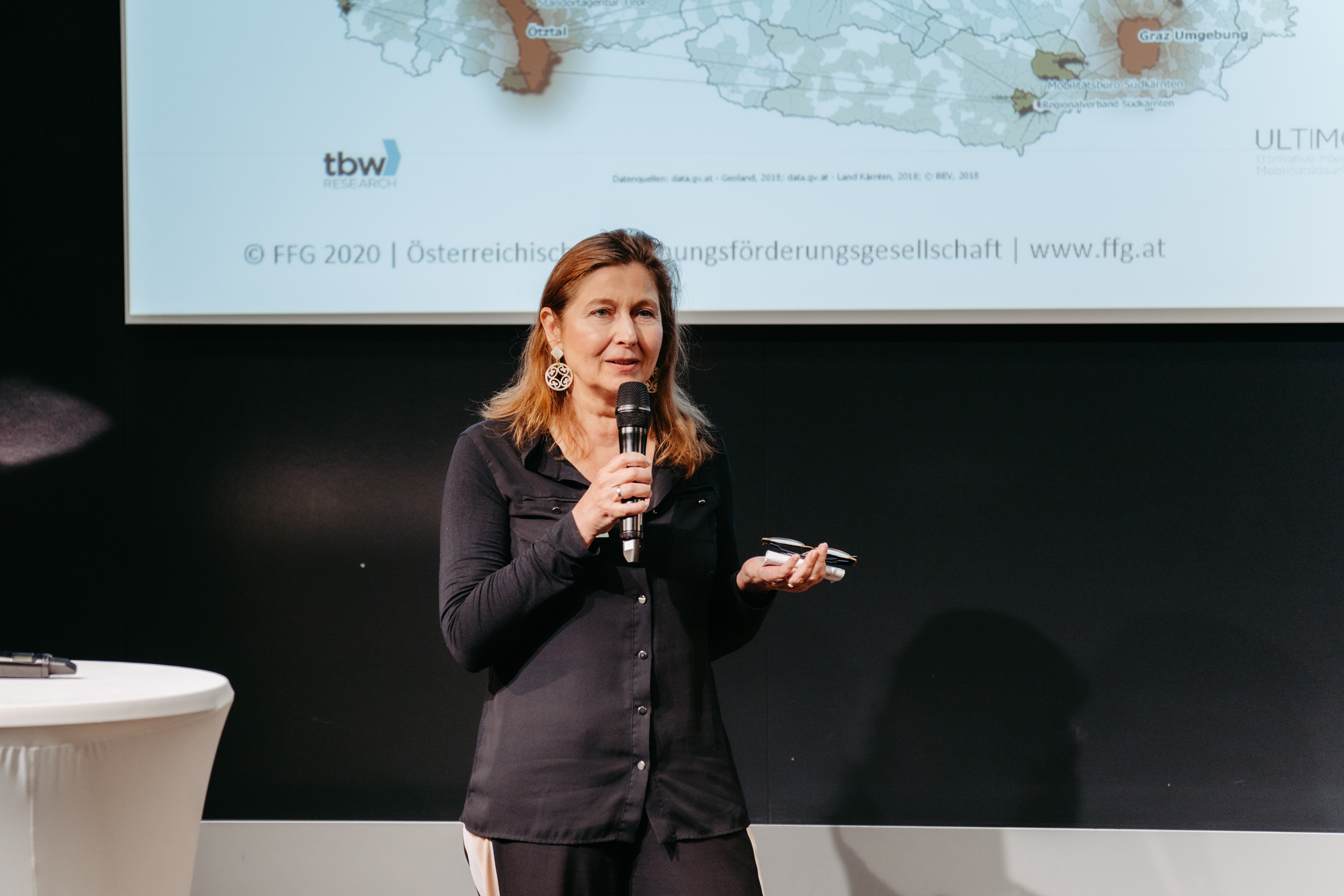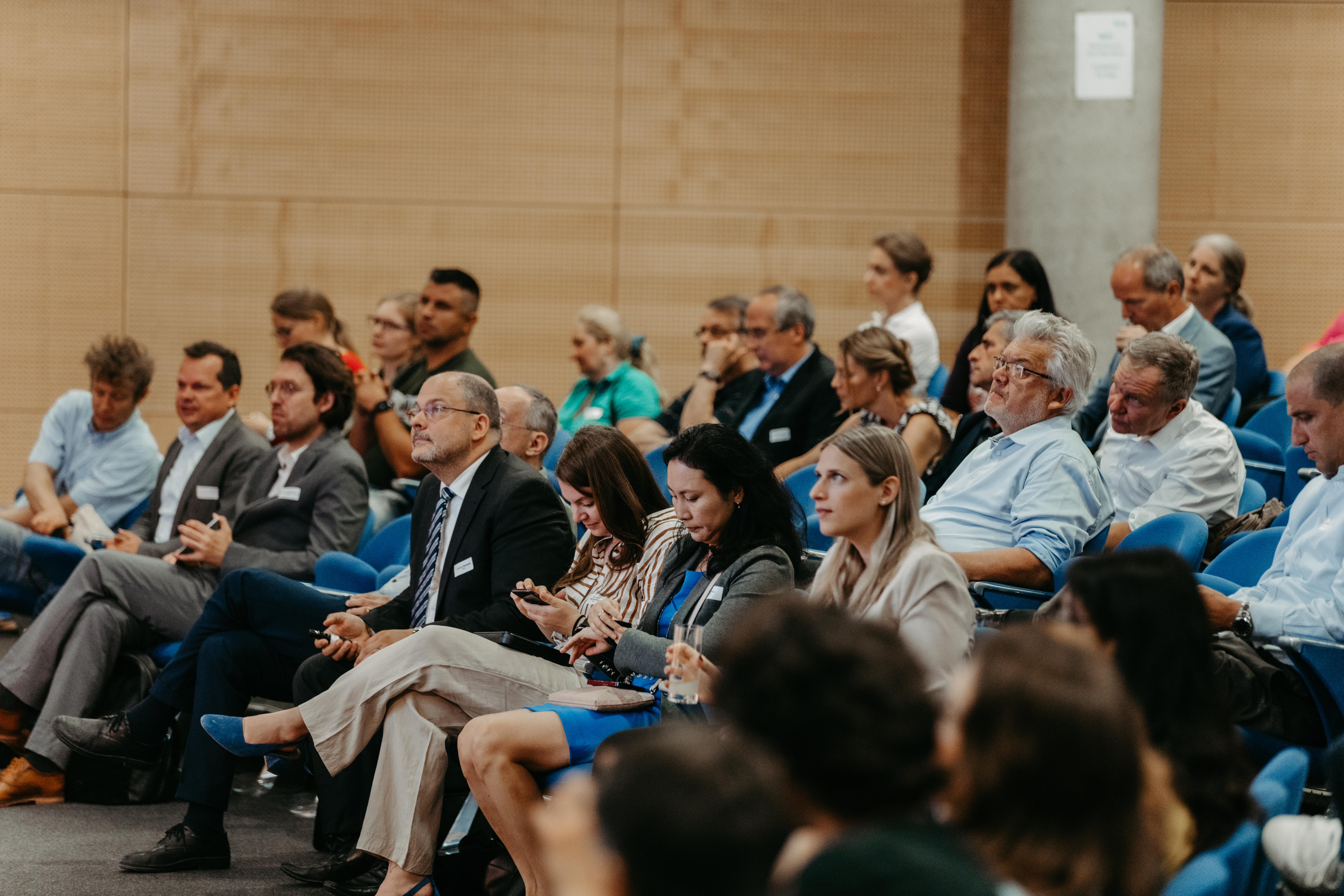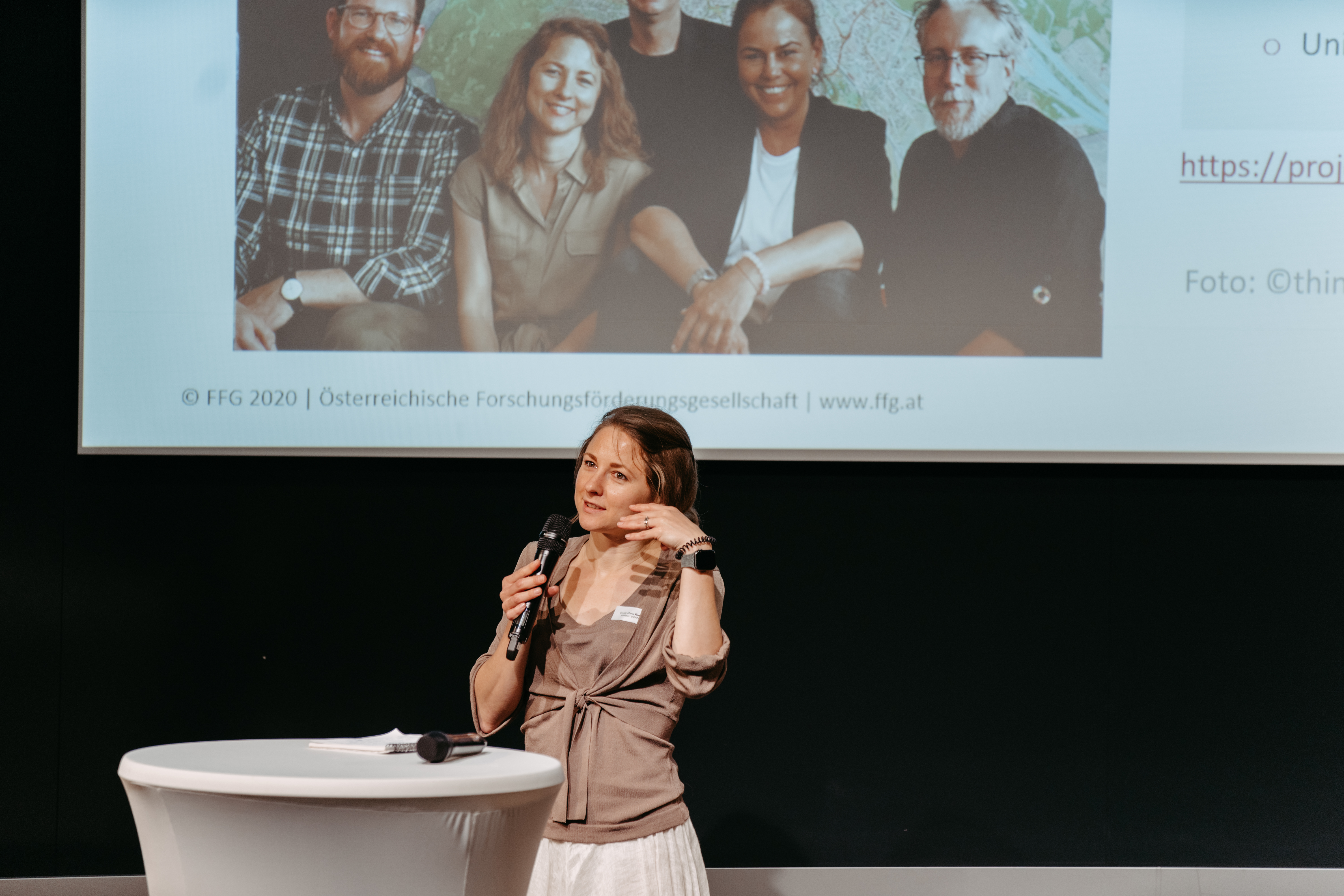 Unter der Moderation von Claudia Falkinger kamen rund 140 Teilnehmende im Wiener Techgate zusammen, um sich über die breite Auswahl an Finanzierungstöpfen für Forschung, Technologie und Innovation (FTI) für die Mobilitätswende zu informieren.