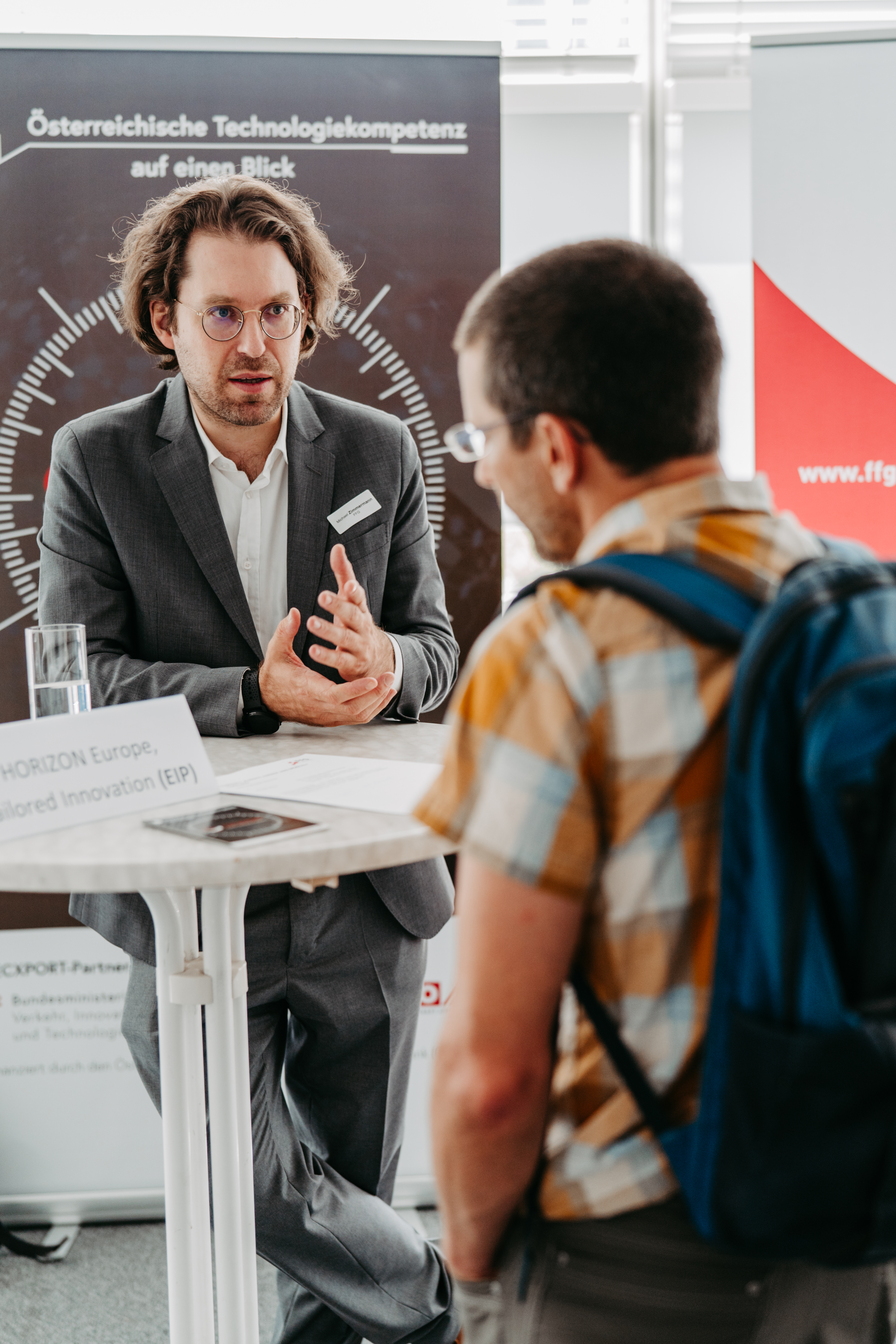 Nach dem Überblick über die zur Verfügung stehenden Instrumente konnten sich die (potenziellen) Fördernehmenden bei den Infotischen der Förderagenturen maßgeschneiderte Beratung holen.